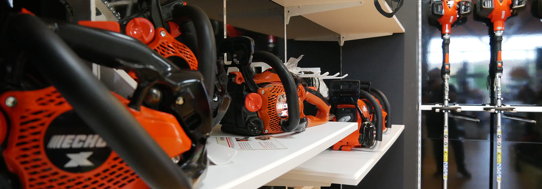 Nei nostri negozi trovi motoseghe, decespugliatori, tagliasiepi, tagliaerba, soffiatori e abbigliamento protettivo a marchio ECHO.